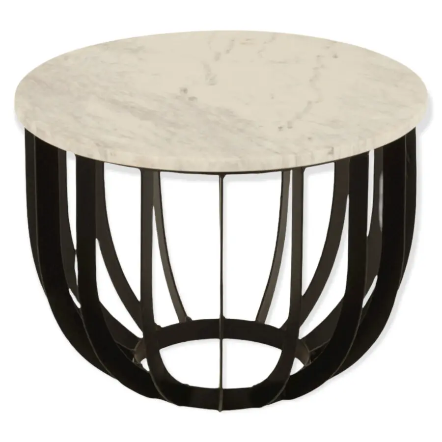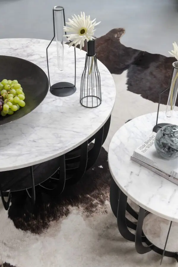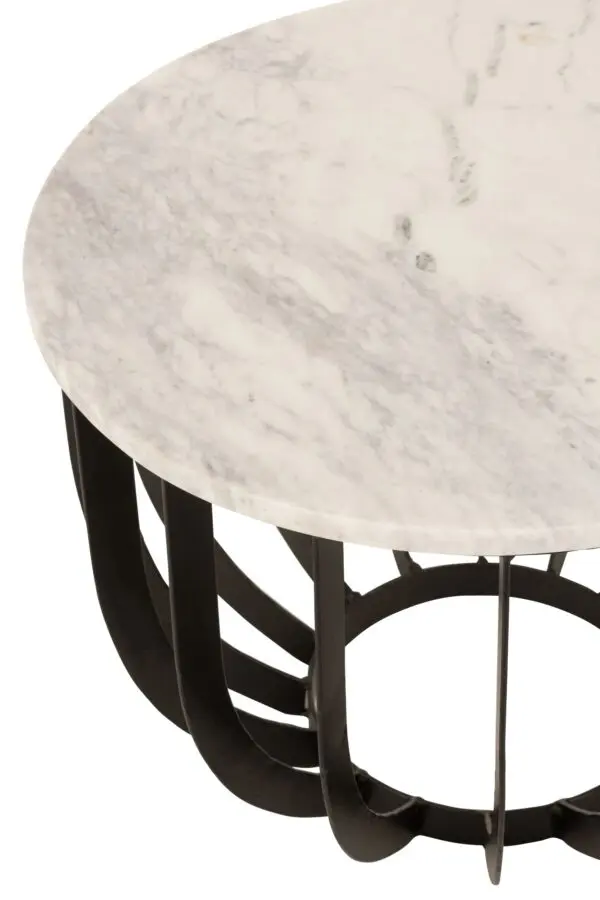 TABLE GIGOGNE RONDE MARBRE/METAL BLANC/NOIR