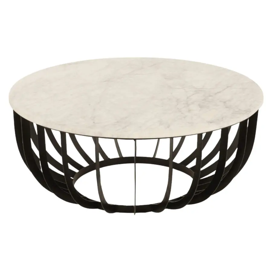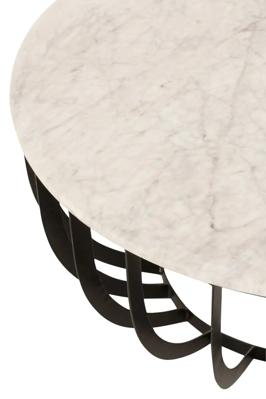 TABLE BASSE RONDE MARBRE/METAL BLANC/NOIR LARGE