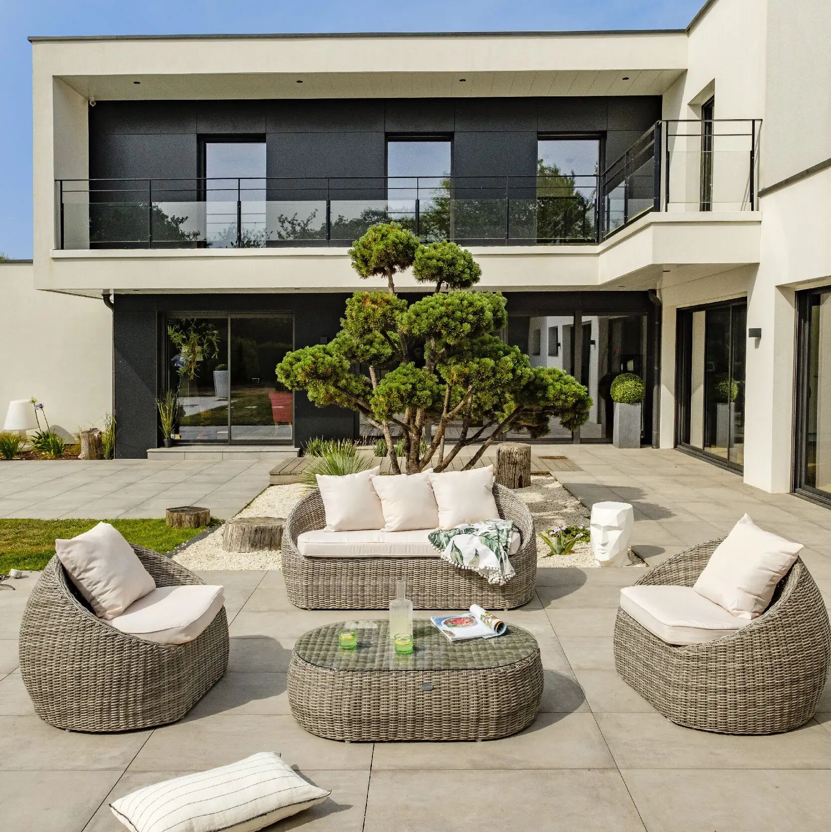 Salon bas de jardin résine tressée ISA 5 places