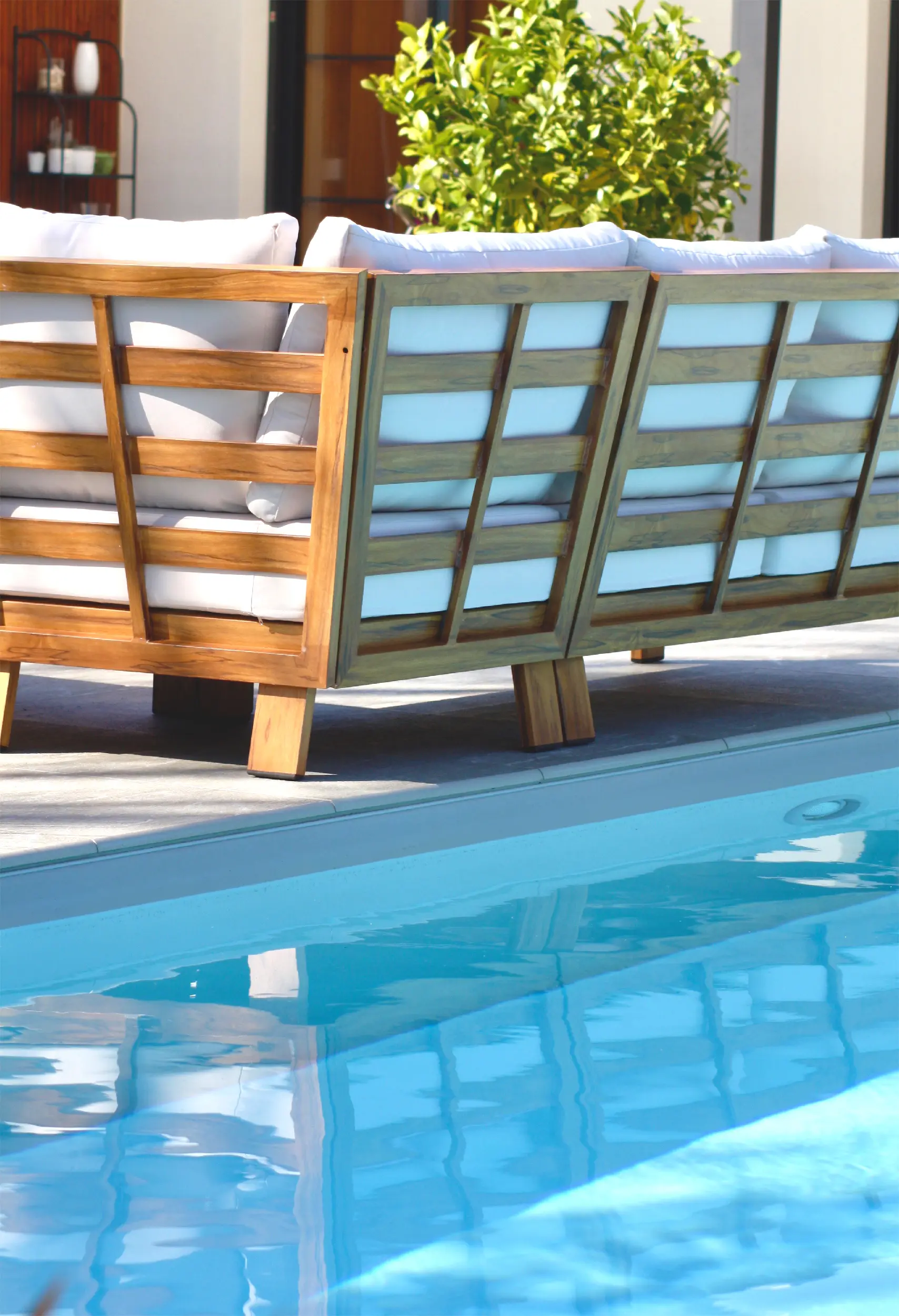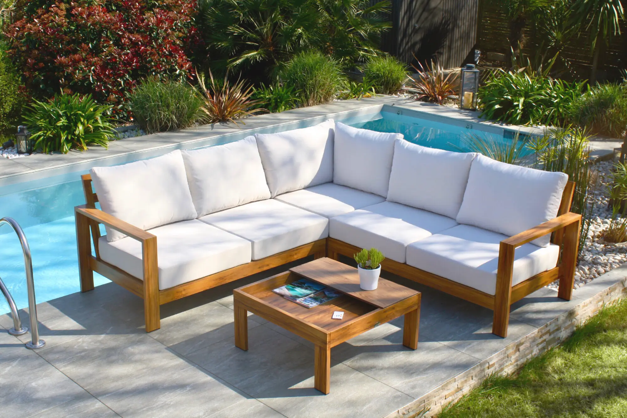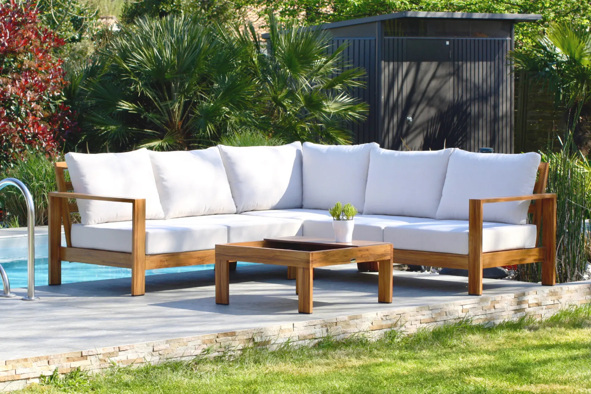 Salon de jardin d’angle en aluminium effet bois MAJORQUE 5 places