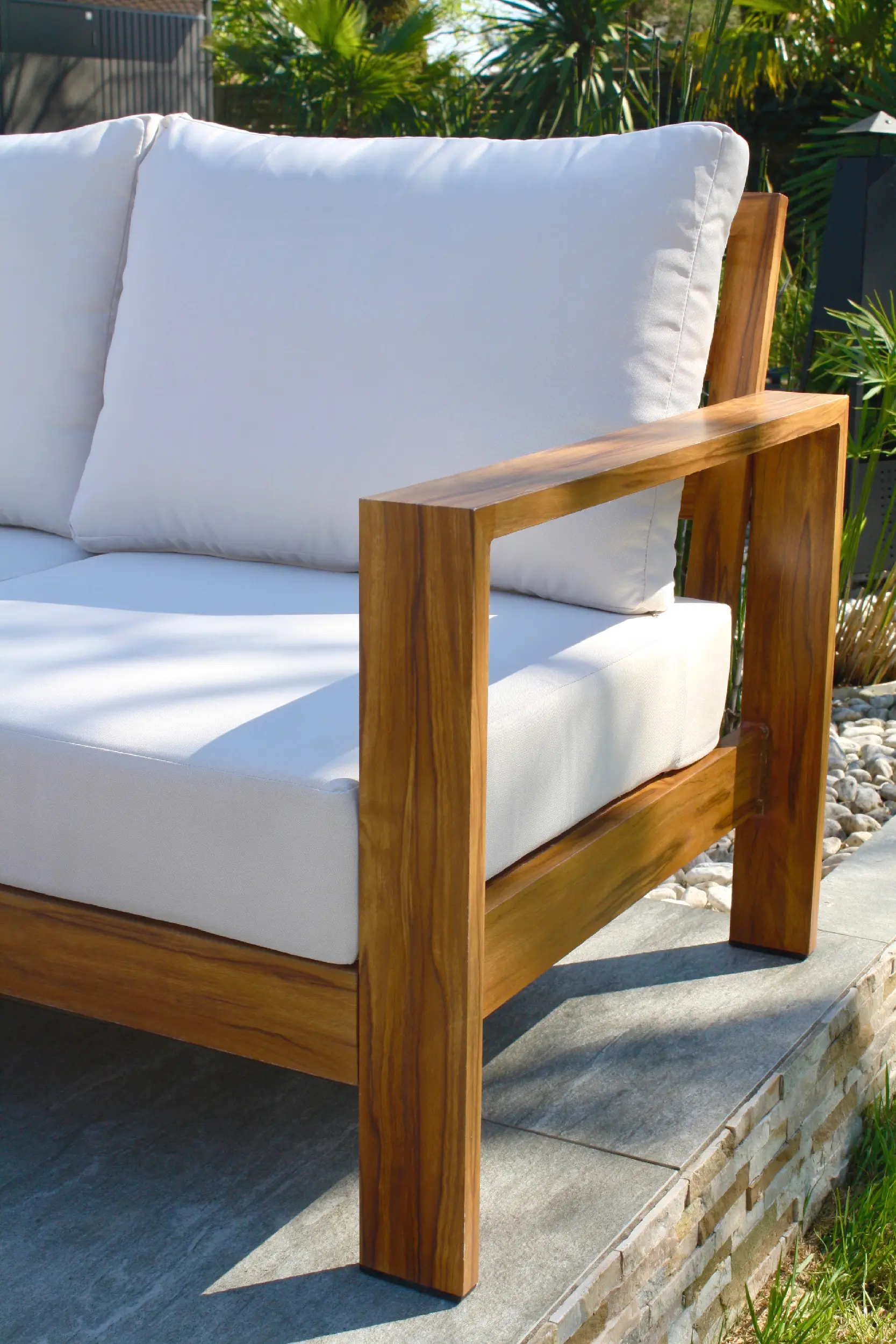 Le salon de jardin d’angle en aluminium effet bois  MAJORQUE permet d’asseoir confortablement jusqu’à 5 personnes. Sa table carrée est surmontée d’un plateau amovible à la fois pratique et élégant.