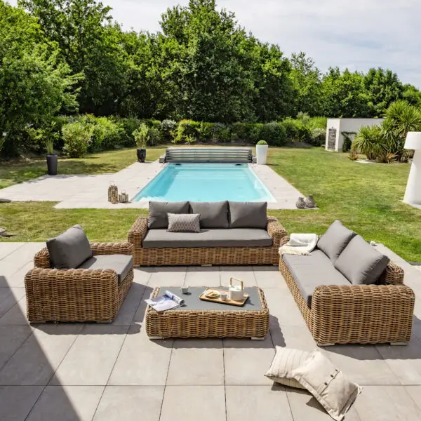 La qualité de son tressage alliée à sa couleur donnent au salon de jardin résine tressée naturel BORA BORA une allure résolument exotique.