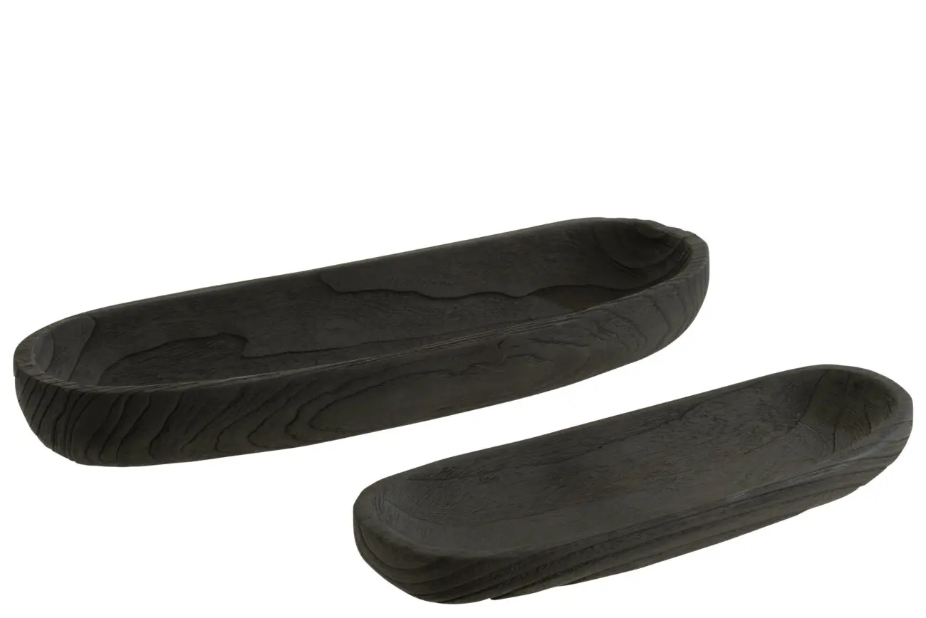 Set 2 bols allongés Masni – Bois de paulownia – Noir
