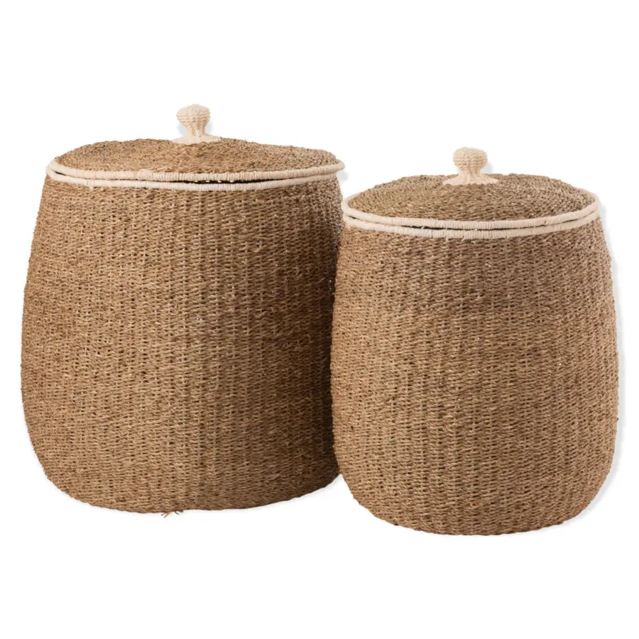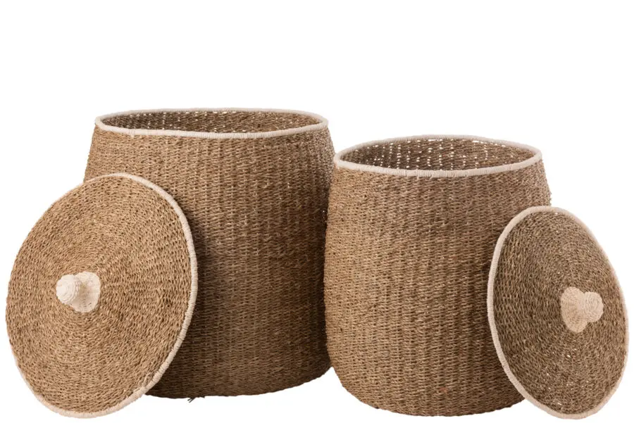 Set de 2 paniers avec couvercle en papier marron