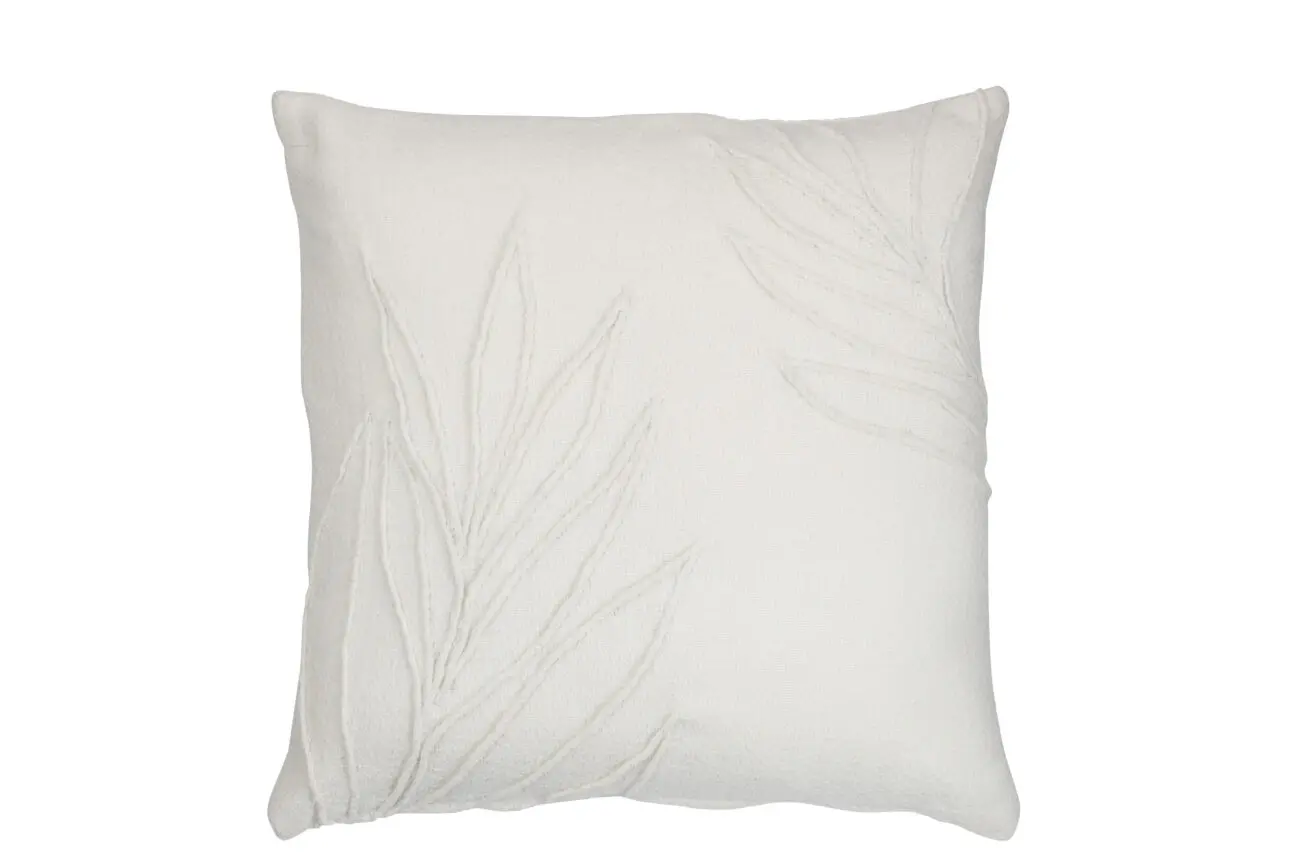 Coussin carré feuilles en relief en polyester blanc SHEETS