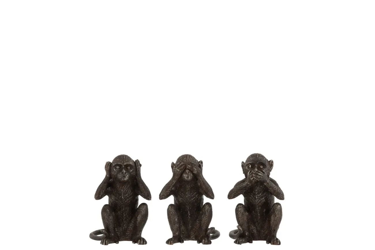 SINGE ENTENDRE/VOIR/SE TAIRE RESINE MARRON FONCE SMALL LOT DE 3