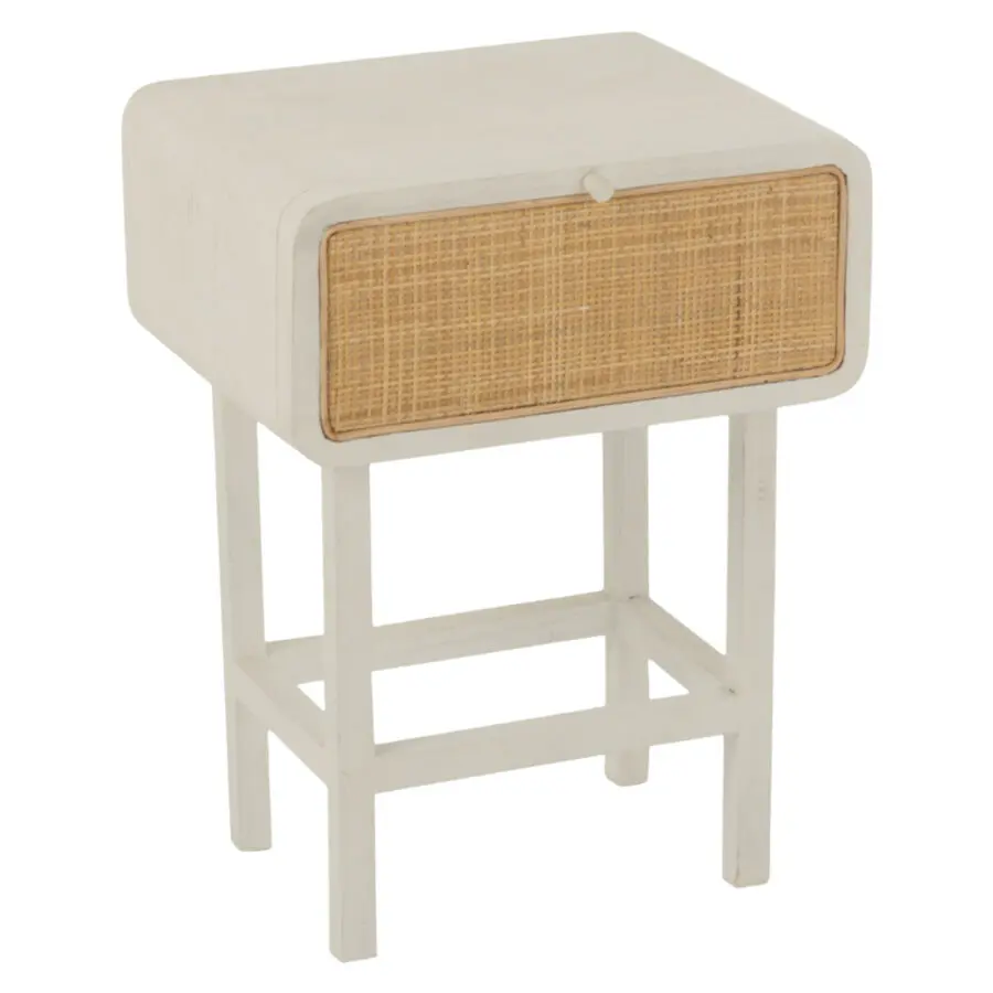 TABLE D’APPOINT MOLLY BOIS EXOTIQUE/ROTIN BLANC