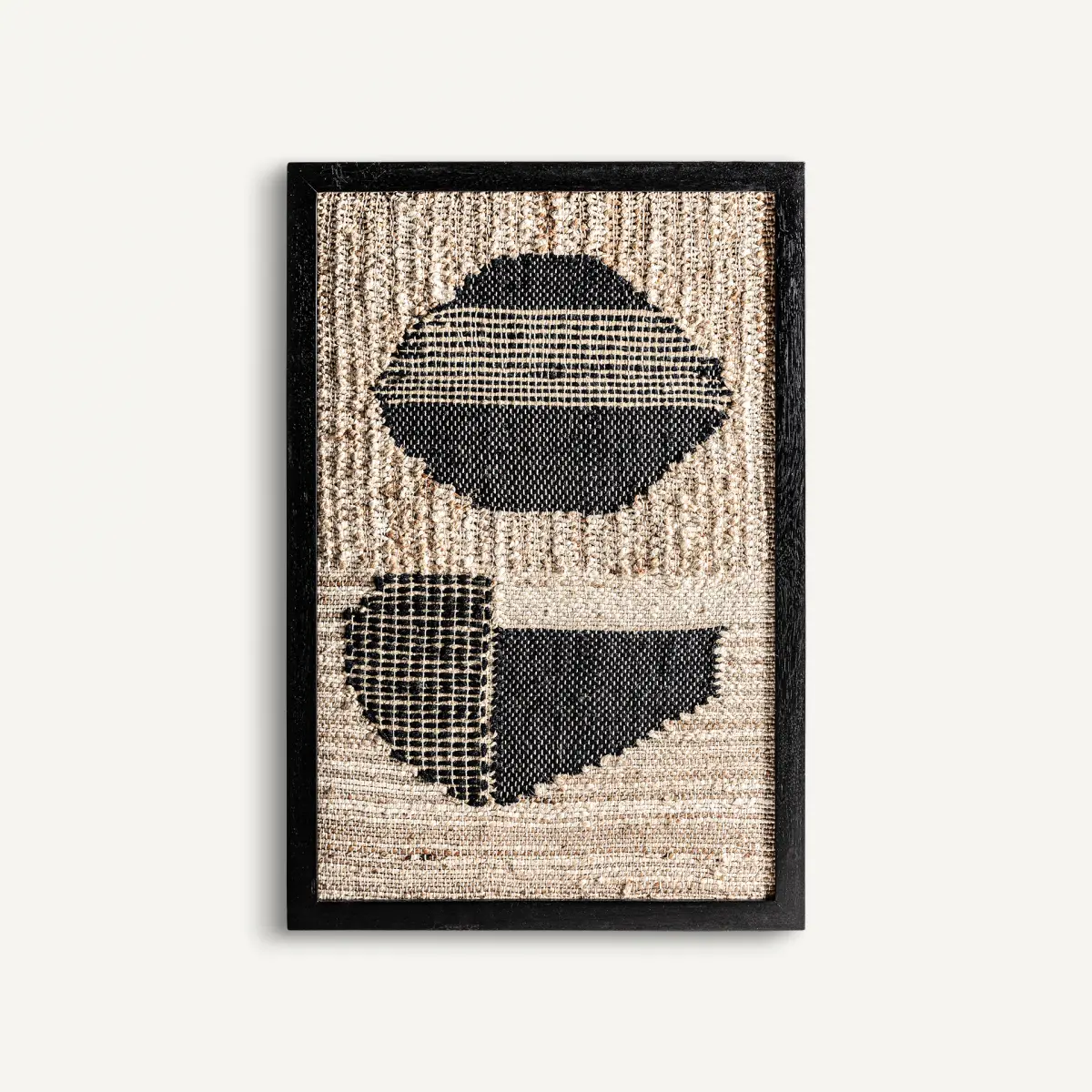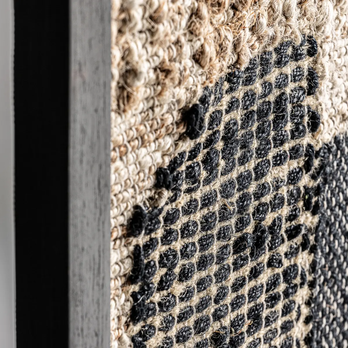 Tableau celso, couleur tons foncés artisanal / artisanale, style contemporain. Fabriqué en bois de mangue, combiné avec jute et coton.