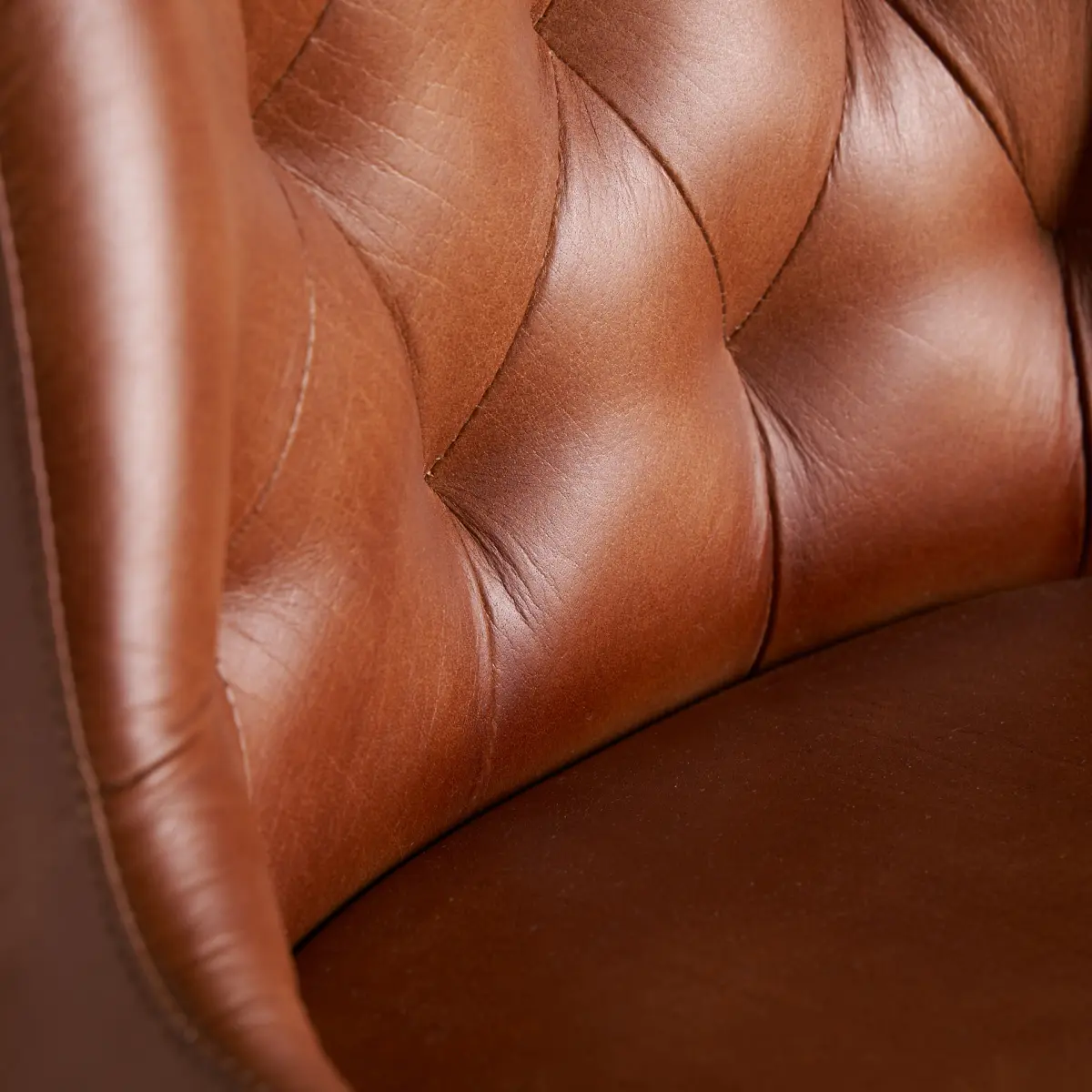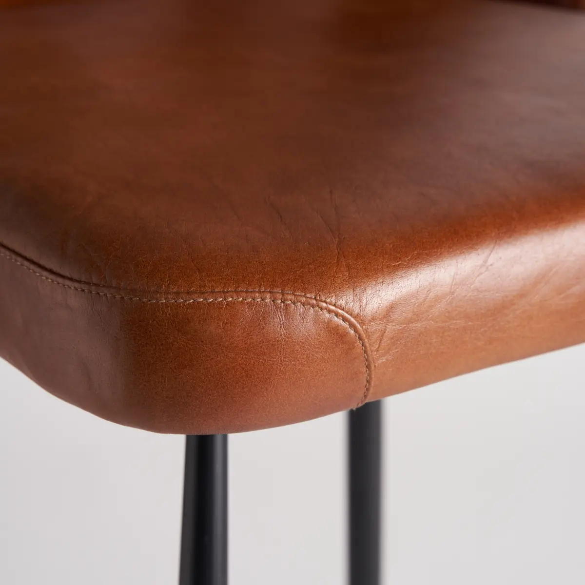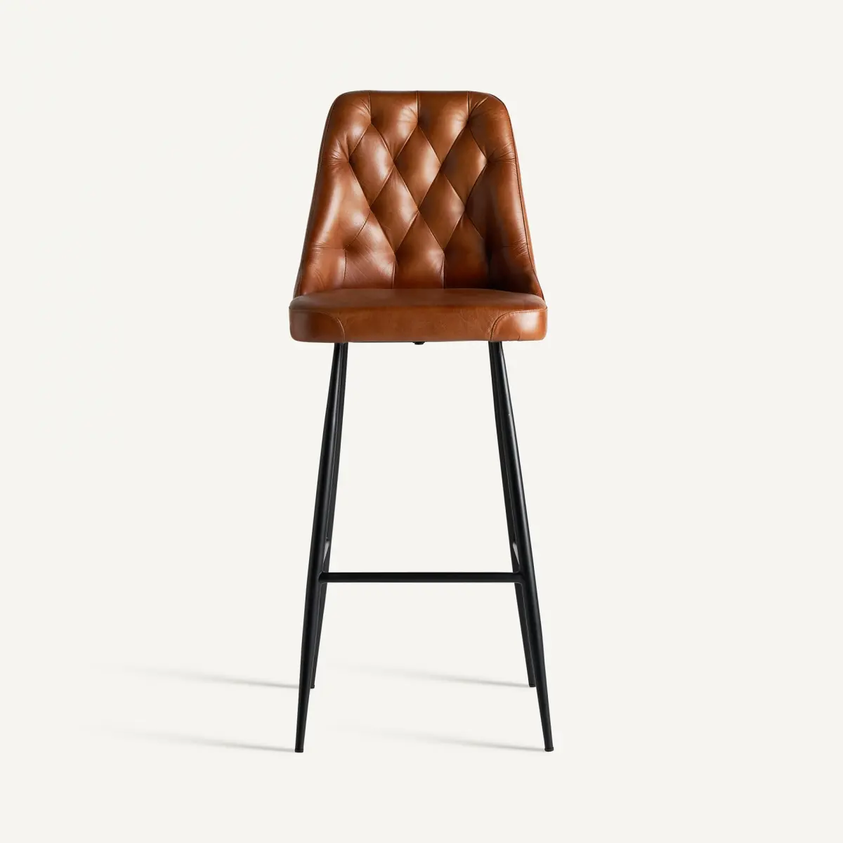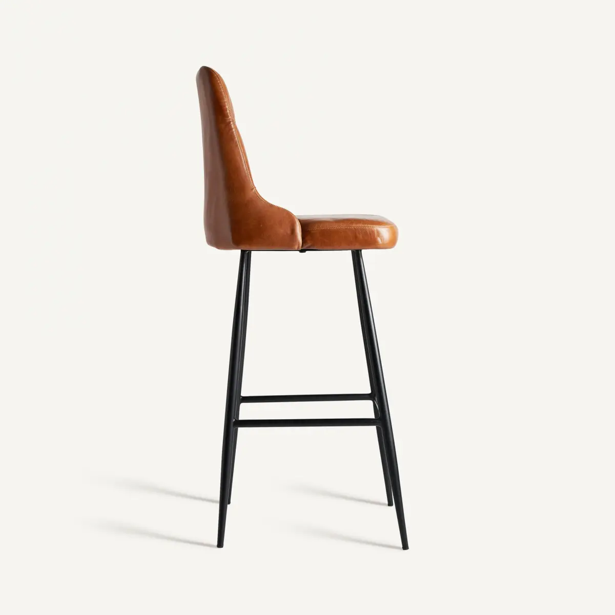 Tabouret dexter Vical Home, couleur marron, style vintage. Fabriqué en fer, combiné avec cuir et mousse. Produit démontable.