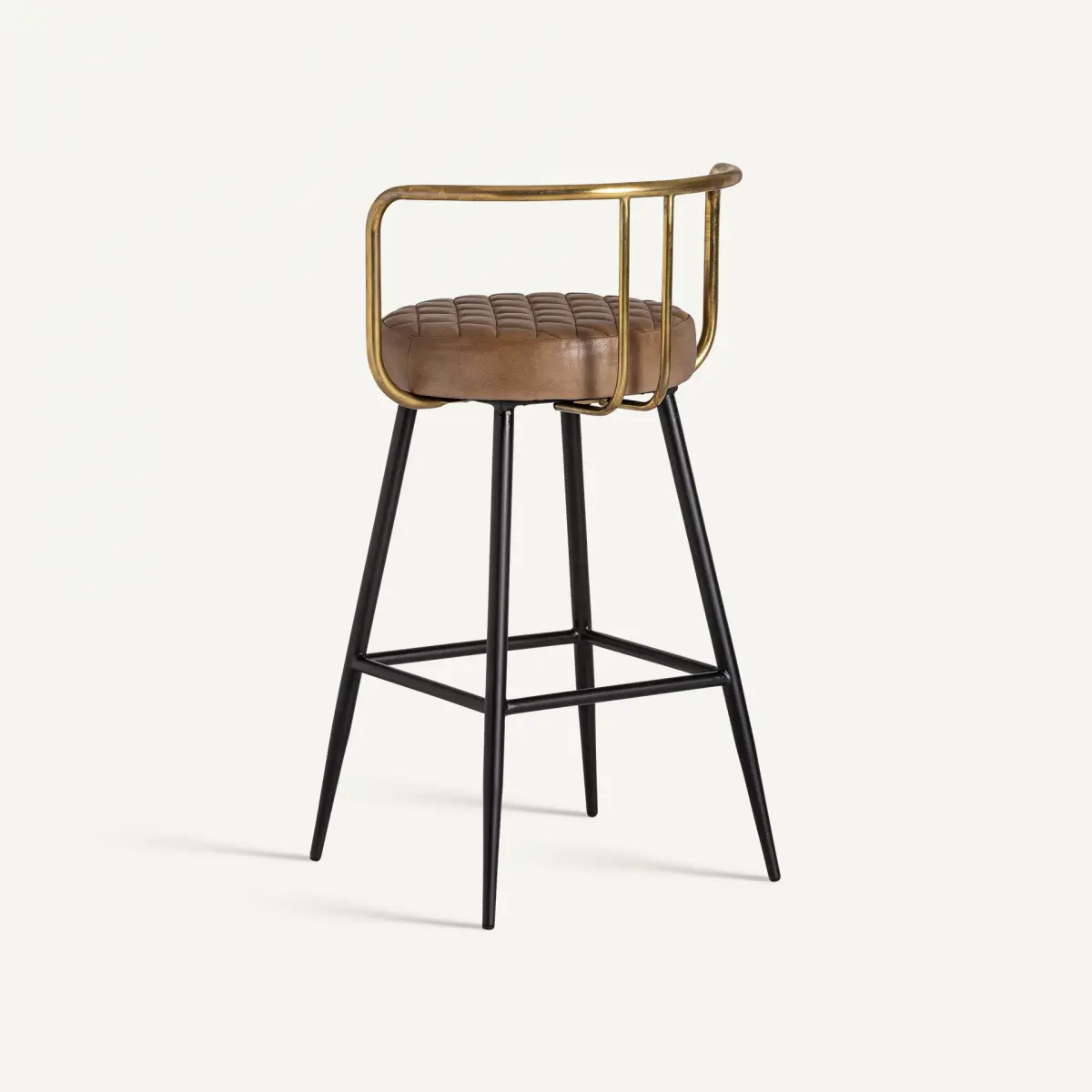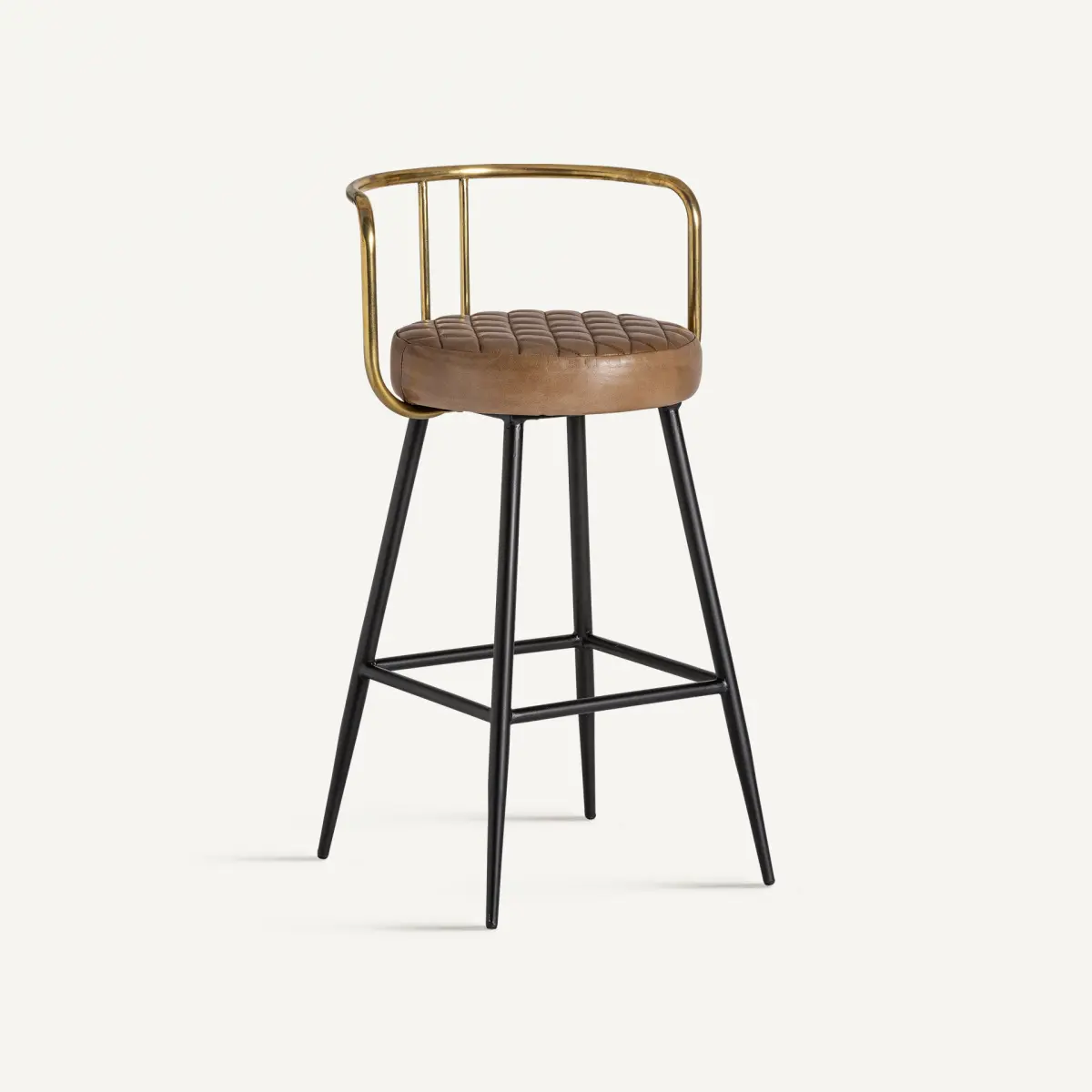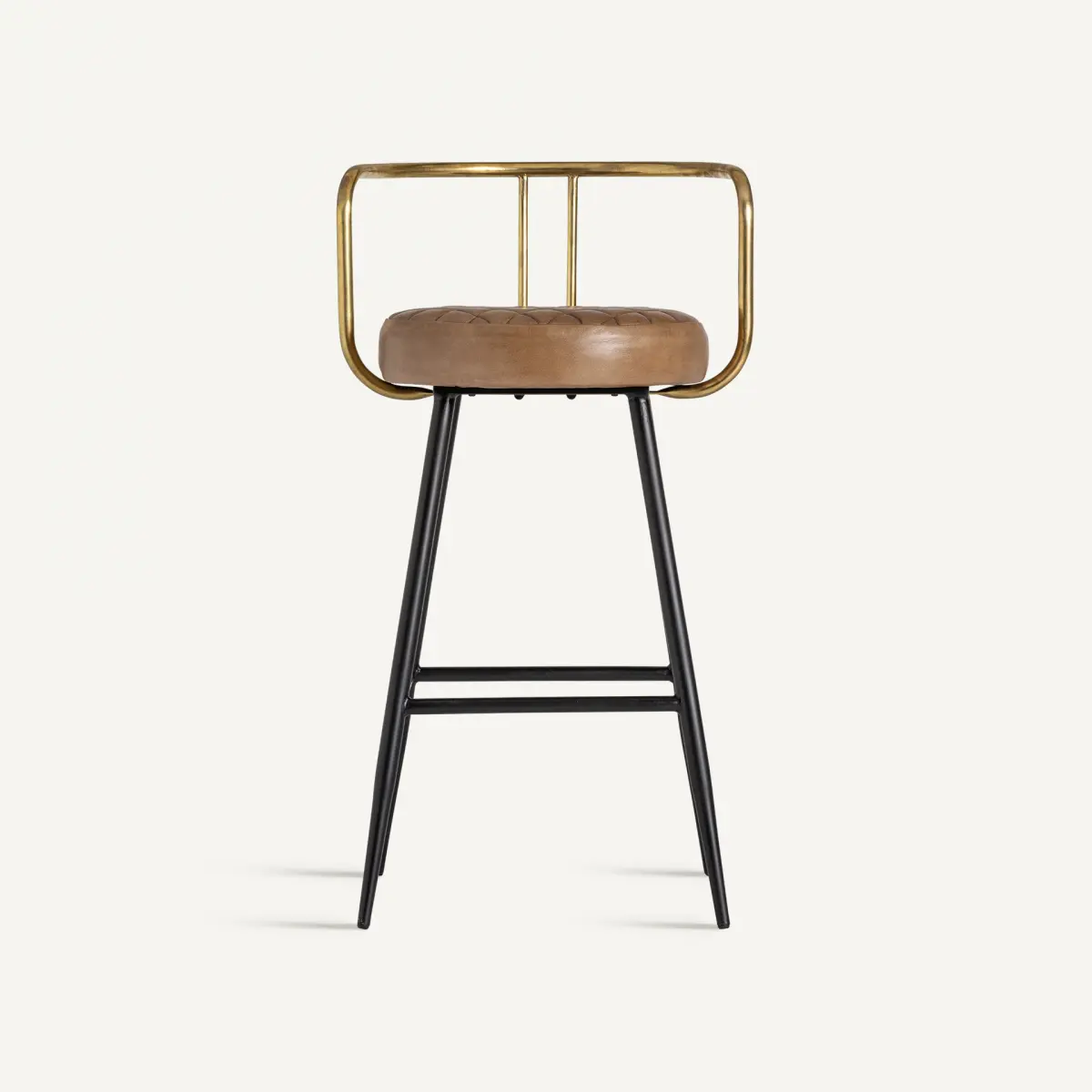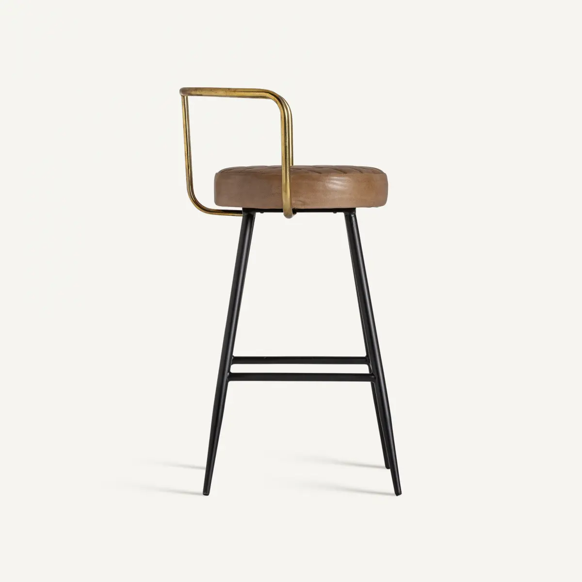 Tabouret elkins Vical Home, couleur marron, style vintage. Fabriqué en fer, combiné avec peau. Produit démontable.