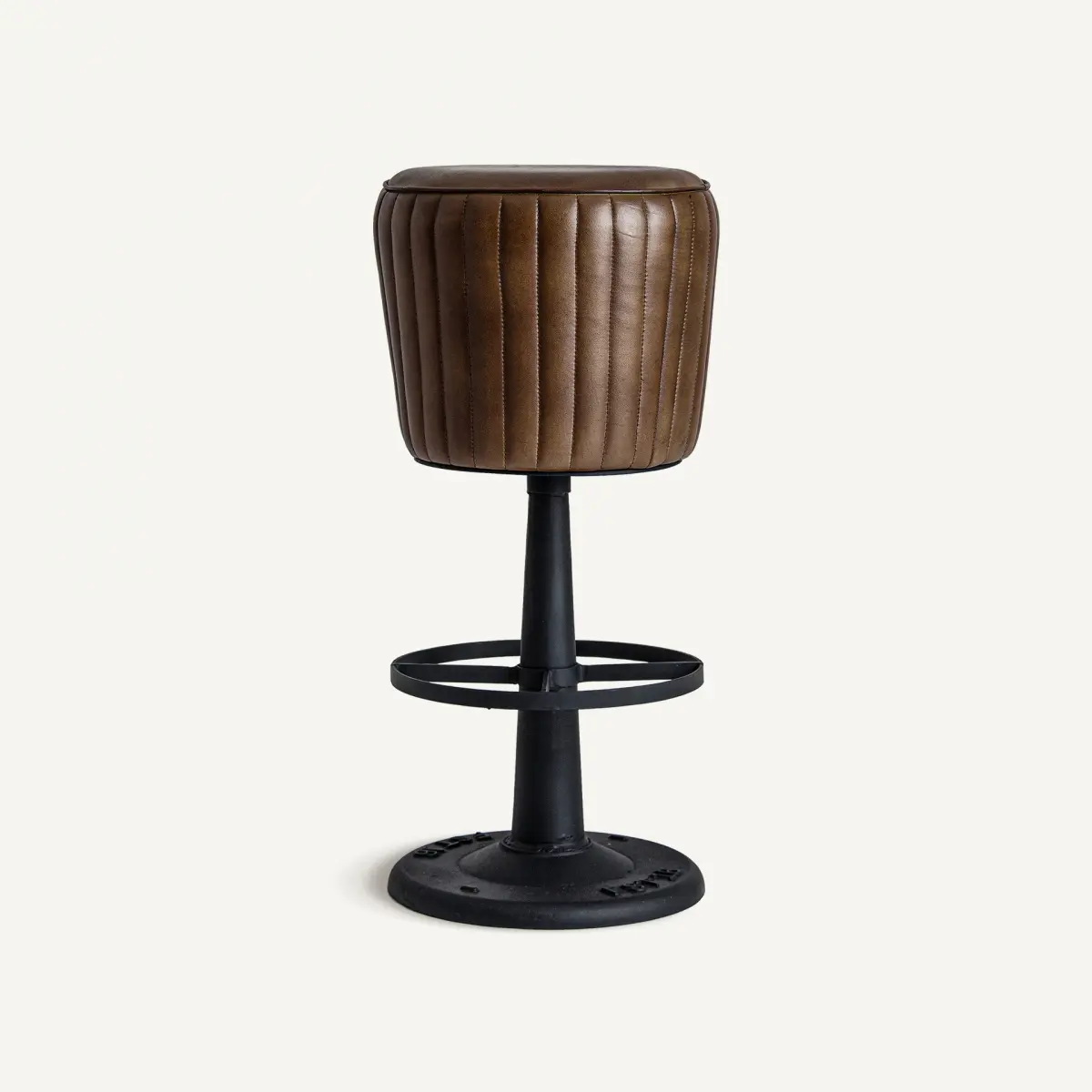 Tabouret seney Vical Home, couleur marron, style vintage. Fabriqué en fer, combiné avec cuir de chèvre.