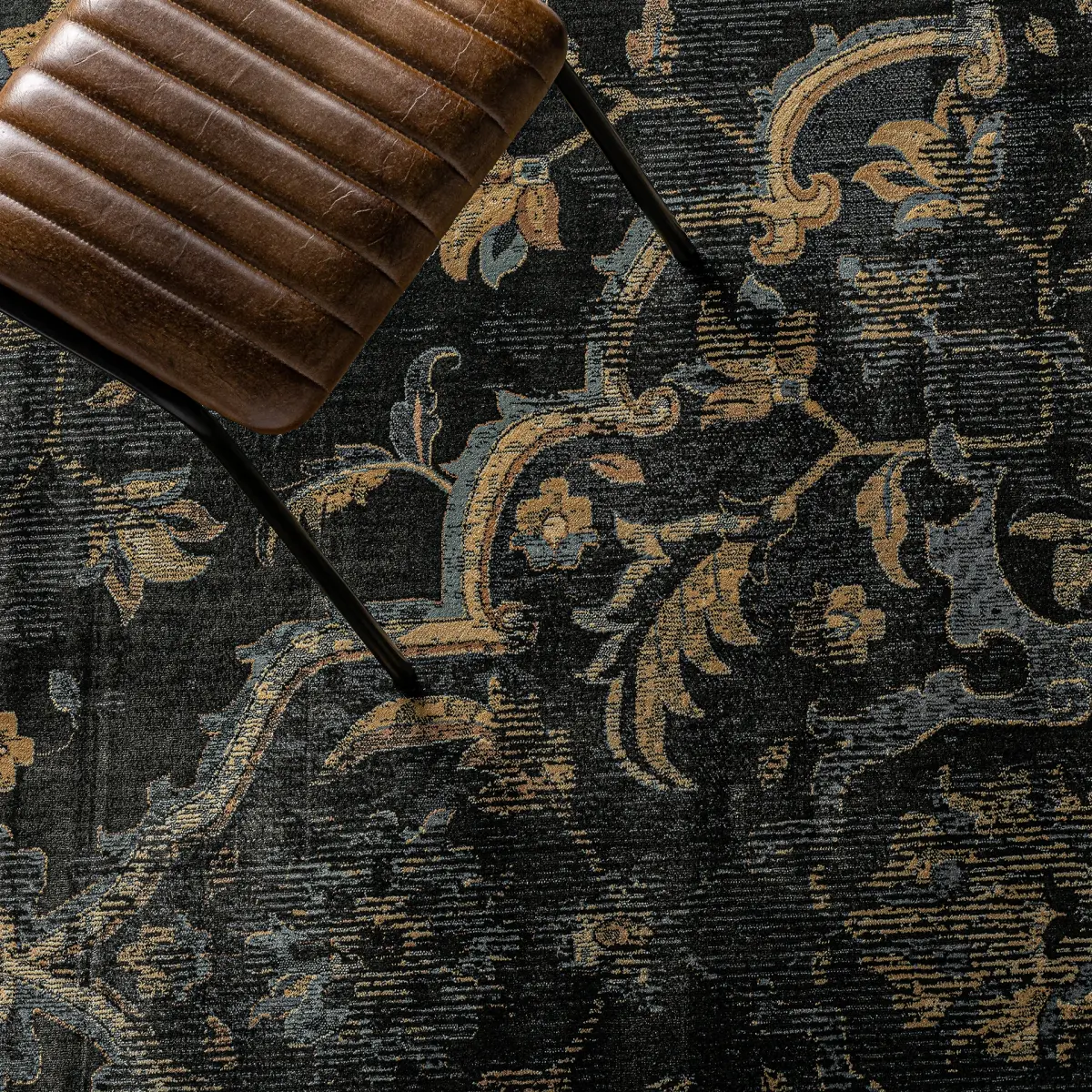 Tapis rectangulaire anxela, couleur tons foncés, style classique. Fabriqué en viscose.