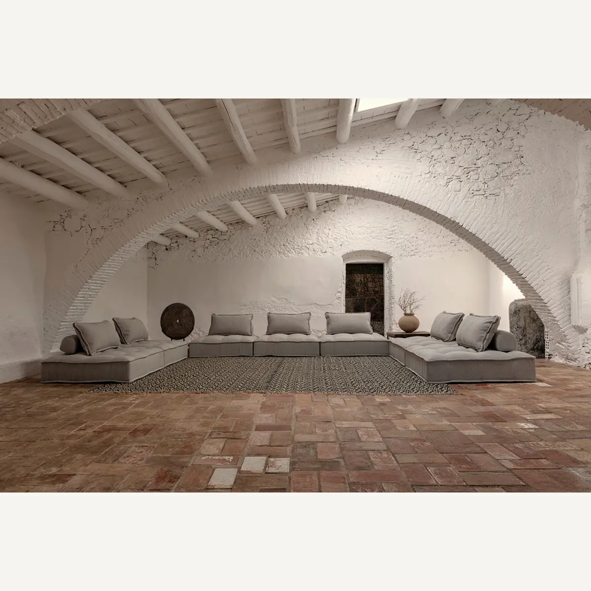 Tapis rectangulaire ghanima, couleur beige tinté, style colonial. Fabriqué en jute.