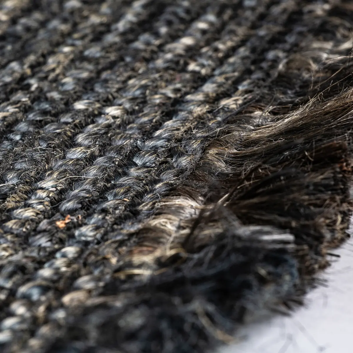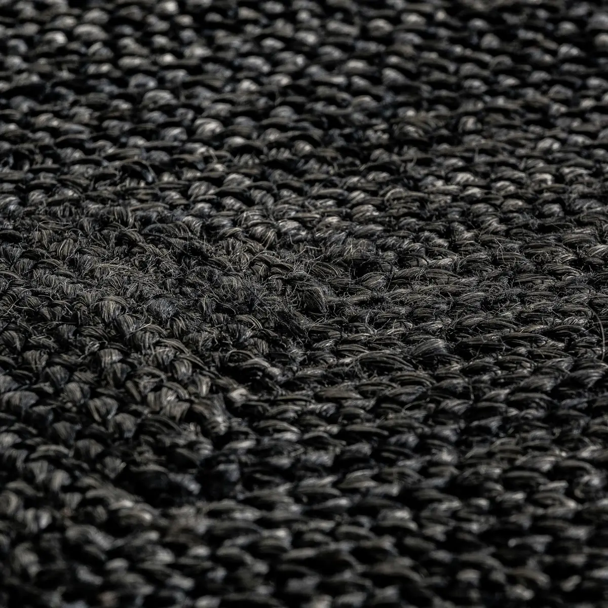 Tapis rectangulaire kisai, couleur noir tinté, style colonial. Fabriqué en jute.